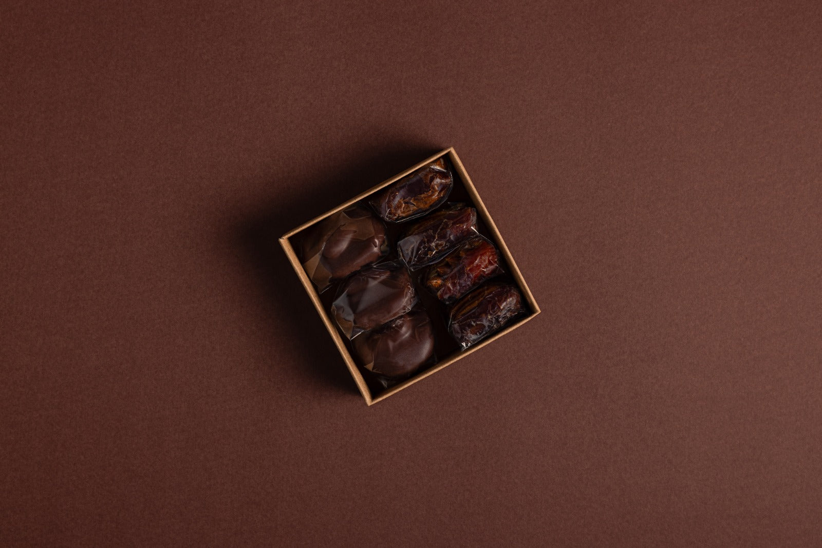 Appricots with pistachios dipped in dark chocolate along with almond filled dates