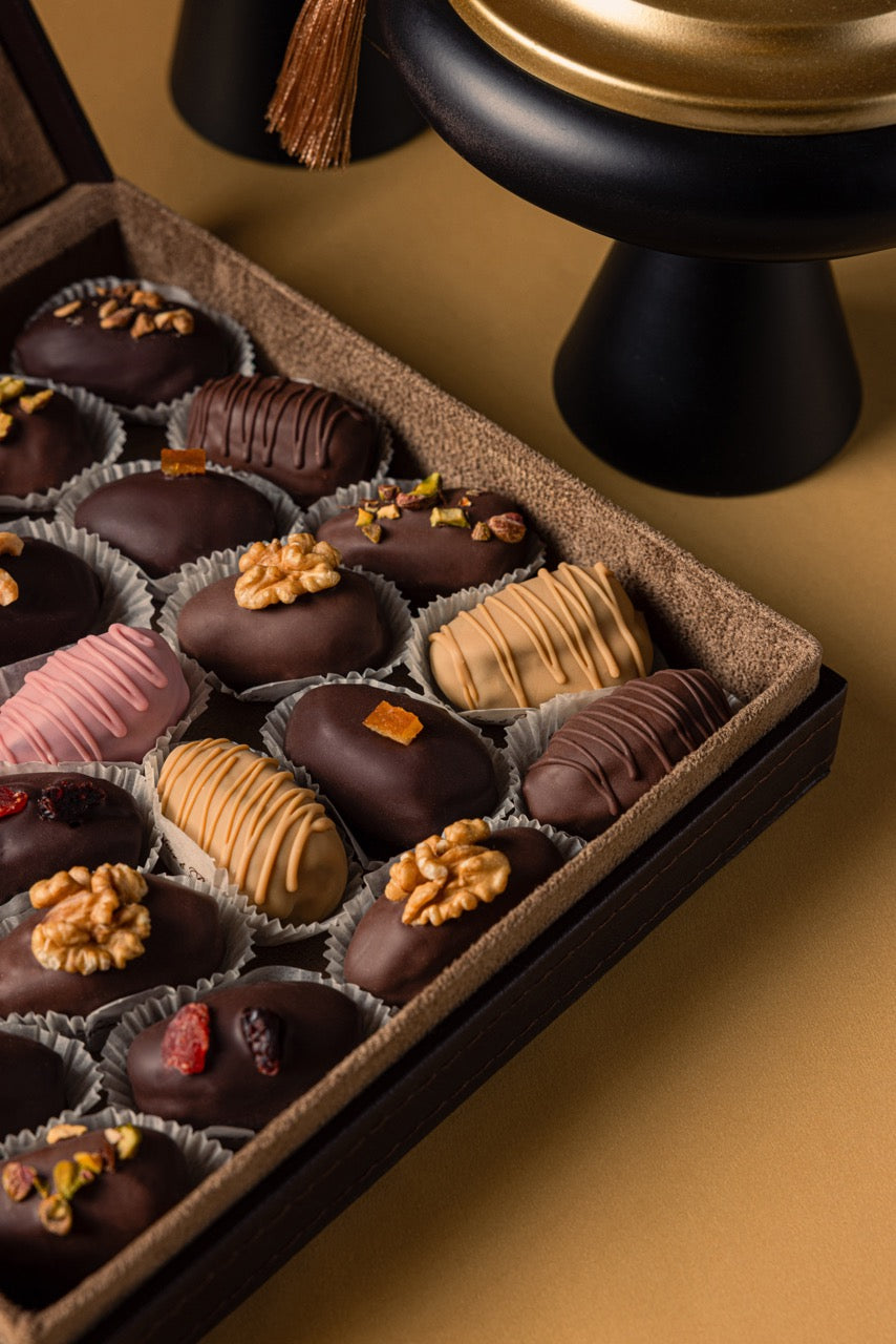 Assorted dipped dates with different fillings