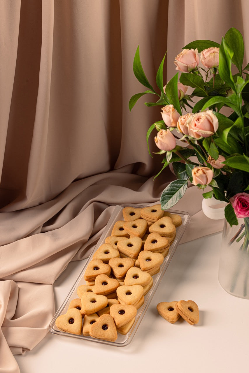 Vanilla petit four with strawberry jam